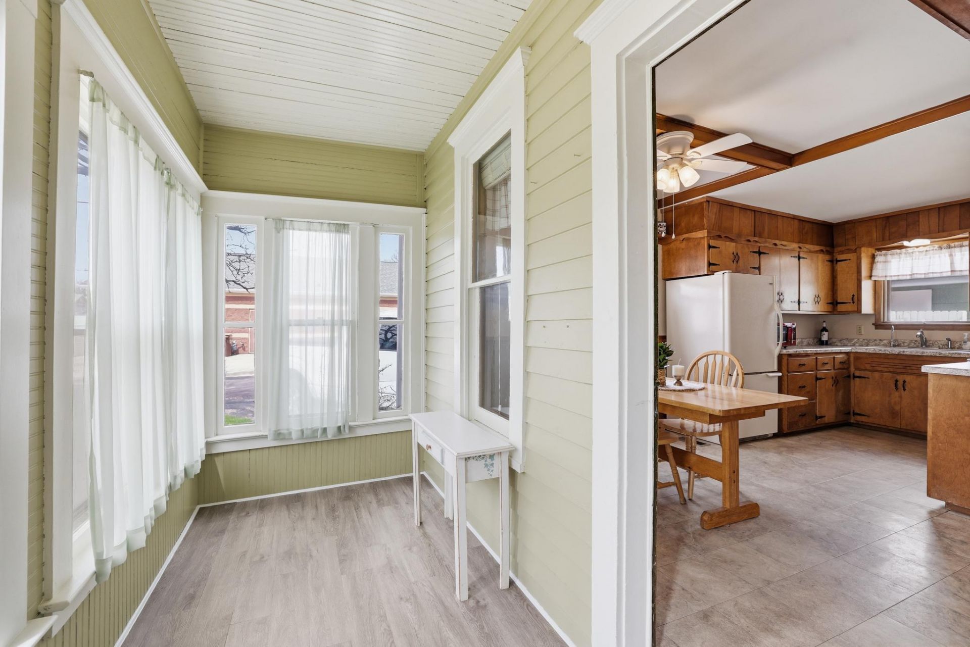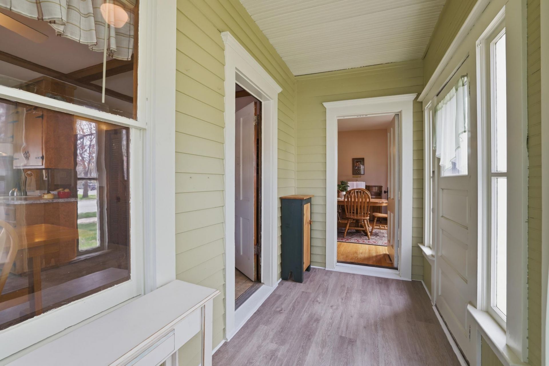 Step back in time without sacrificing modern comfort in this beautiful Victorian two-story home located in the heart of Belle Plaine. This 4-bedroom, 2-bathroom home is ideal for those who value character over cookie-cutter. The main level features high ceilings, eat-in kitchen with beamed ceiling, formal dining room with hardwood floors and bay window, main-level bedroom with French doors, bright living room, two enclosed front porches, and full bathroom. Hardwood floors span throughout the upper level, where you will find three additional bedrooms, an office, a walk-in storage room and ¾ bathroom. The spacious lot boasts mature maple trees and a detached two stall garage featuring a 12x20 screened-in porch. Original ornate gable brackets showcase timeless characteristics of this well-built home. Newer windows throughout and encased by original trim. Conveniently located within walking distance of parks, schools, the library, restaurants, boutiques, and the municipal pool. Don't miss this one!