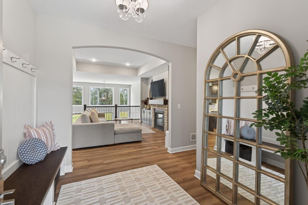 Embrace luxury living immersed in nature in this custom rambler with indoor sport court backing directly to the 30,000+ acre Sherburne National Wildlife Refuge. (EXTERIOR PICTURES from the fall to be published by March 14th).Why do through the time, expense, and stress of building when this exceptional 2024-built home is already completed and ready for you to move in? Situated on a beautifully set-back, tree-filled lot with direct access to protected refuge land, this property offers a rare combination of privacy, natural views, and high-end modern finishes. The main level showcases exceptional natural light and an open, airy layout featuring tray ceilings, luxury lights, picture frame molding, and beautiful LVP flooring throughout. The kitchen is designed for both everyday living and entertaining with quartz countertops and backsplash, stainless steel appliances, custom cabinetry, and a spacious walk-in pantry complete with electrical outlets for small appliances and prep space. Custom built-ins continue throughout the foyer, mudroom, kitchen, and living room fireplace with brick surround, creating both visual appeal and functional storage. The primary suite features a tray ceiling, custom built-in closet systems, and a modern tiled shower with niche. The en-suite bath also offers in floor heat, and direct access to the LG washer and dryer with a convenient folding counter, creating a thoughtful and efficient daily routine.The lower level is designed for recreation and wellness, featuring a massive gym area and a dedicated indoor sport court with basketball hoop. Additional insulation was installed on the adjoining wall to reduce sound, making it ideal for year-round activity without disruption. A split rear staircase with landing provides convenient backyard access, leading to a large concrete patio with beautiful west-facing sunset views, perfect for relaxing or entertaining while enjoying the peaceful natural setting.Car enthusiasts and hobbyists will appreciate the oversized 4-car garage, gas heater line available, includes EV charging hookups, and features two floor drains.Additional highlights included underground sprinklers, custom Bali blinds throughout the home with automatic blinds in the primary bedroom, and thoughtful custom design touches throughout. Located in the Zimmerman School District, with many neighbors open enrolling in Elk River schools, and neighborhood bus service available. This area drives across more than 30,000 acres of protected habitat just minutes from your doorstep. Enjoy the perfect balance of luxury living, recreation, and nature in a nearly new custom home that is truly move-in ready.