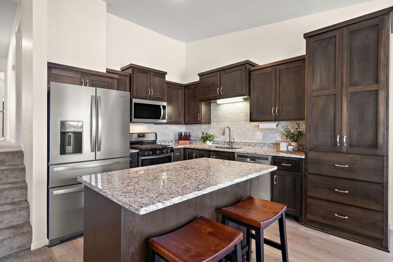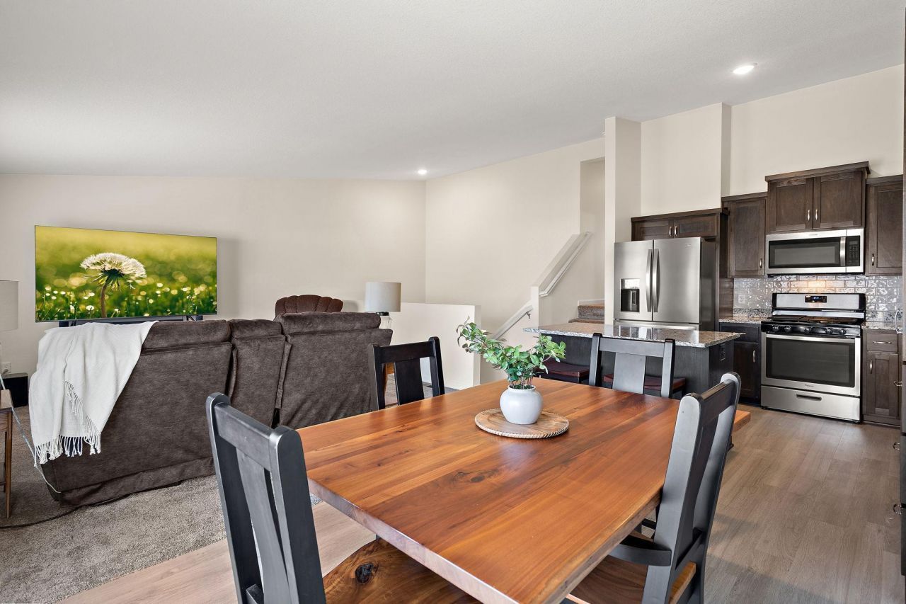 Welcome to this BETTER-THAN-NEW 3-bed, 2-bath townhome in Zimmerman! A spacious entryway welcomes you inside, creating an inviting first impression while keeping the clutter of everyday life conveniently contained. Head upstairs to an open-concept main level featuring a kitchen with center island, tile backsplash, stainless steel appliances, an upgraded refrigerator, added cabinetry beyond the builder's standard, & a never-used dishwasher. The kitchen flows seamlessly into the dining & living areas, with access to a maintenance-free deck overlooking the backyard. A few steps up, the bedroom level offers extra privacy from the main living space. The primary suite includes a walk-in closet & private bath. Two additional bedrooms & a full bathroom complete the upper level. The lower level offers the laundry area, walkout patio door, and unfinished space to customize. This home has been gently lived in with no kids, pets, or smoking. Upgrades include an epoxy floor in the garage, top of the line insulated garage door and additional garage lighting, soft close doors, a washer and dryer, water softener, and blinds. See supplements for a full list. Come take a look?you'll appreciate the care and quality the moment you step inside!