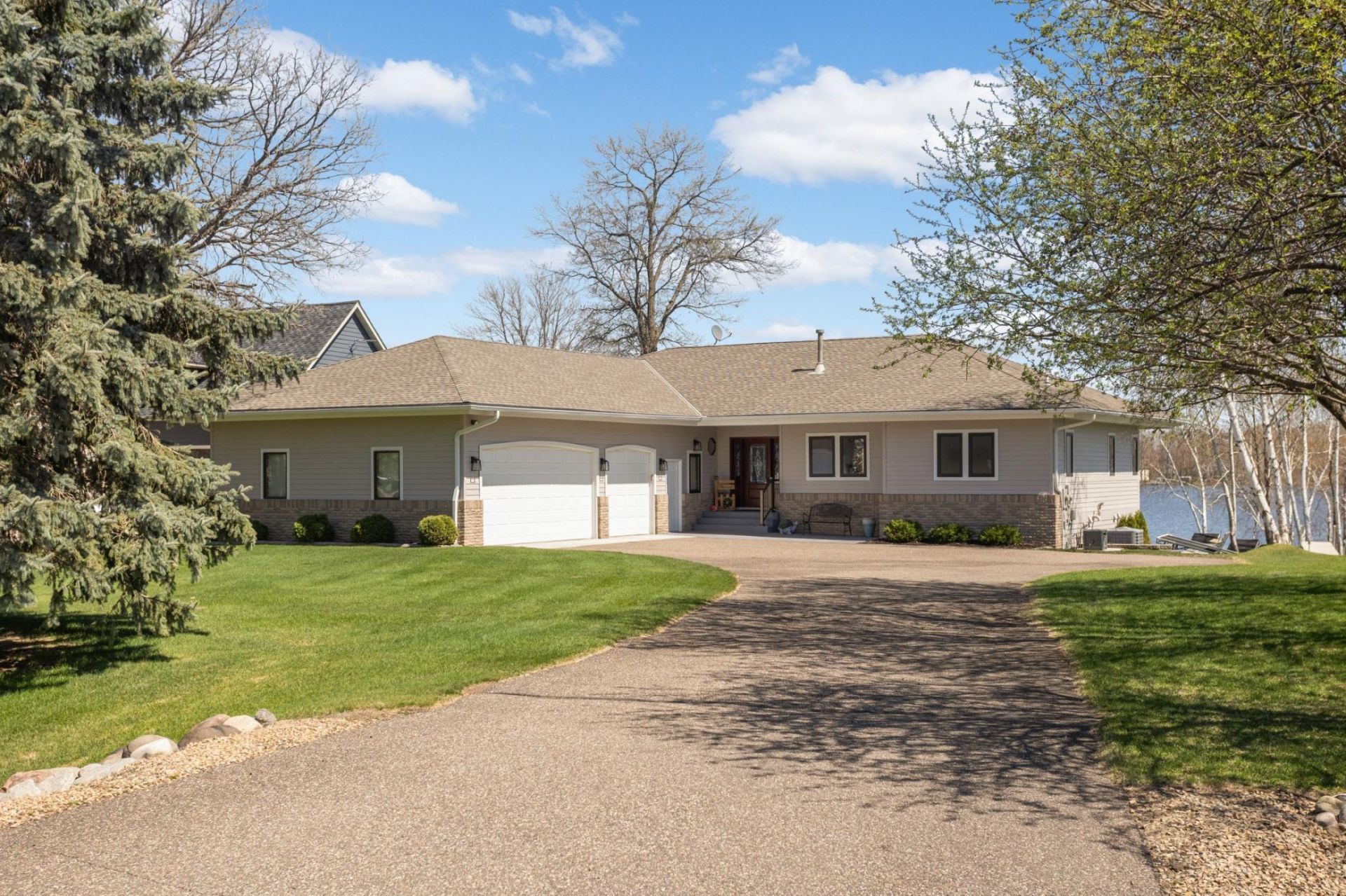 Beautifully updated 3 bedroom 3 bathroom lakefront rambler on Long Lake with 104' of shoreline and true one-level living. This well-maintained property features oak floors, custom oak built-ins, knockdown ceilings, and premium European windows that fill the home with natural light. The kitchen offers both gas and electric range hookups, while the primary suite includes a heated bathroom floor.Major updates include roof (2019), furnace, A/C, and water heater (2021), plus a whole-home water purification system. There is a drain underneath the clothes washer that has been regularly maintained. The lower level features electric in-floor heat for year-round comfort.Enjoy lake views from the large 15x31 deck and 4-season porch with knotty pine and electric baseboard heat. Additional highlights include a 36' x 26' heated/insulated garage, in-ground lake fed irrigation system, newer 5 gutters, Hardie-board siding, and a 60' Floe dock.Long Lake is fully recreational with lakeside dining at Back to Captain's and public boat launch nearby. Bayshore Association includes access to a shared private dock just north of the property. This is a rare opportunity to own a turn-key lake home where the major updates are done. Schedule a showing today!